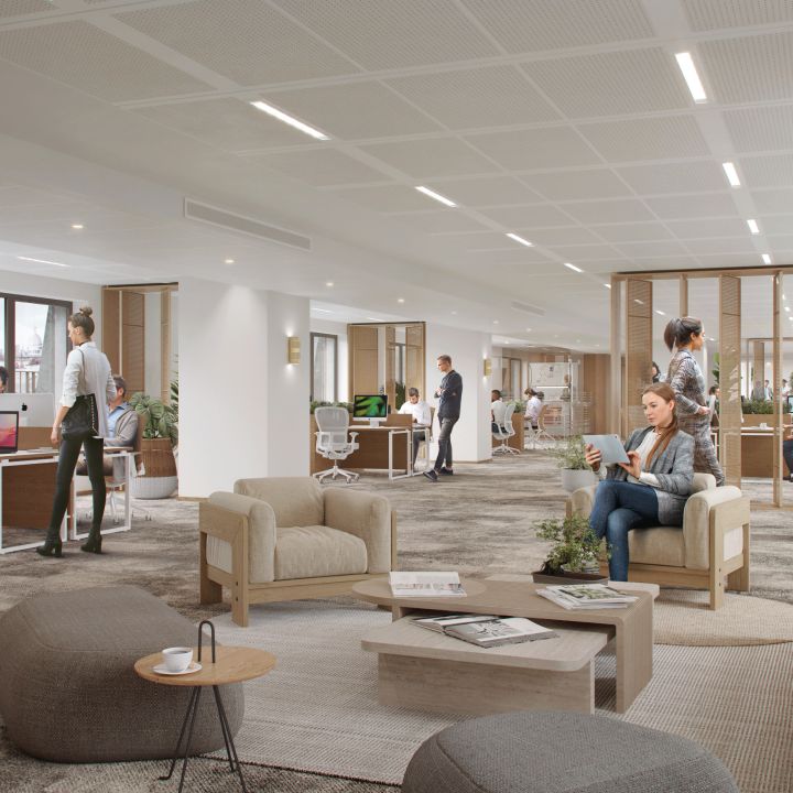 Au RDC, espace flexible de 1 000 m2 (coworking)