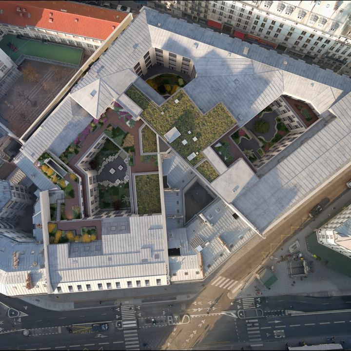 6 terrasses dont la plus grande totalise 182 m2 au R+5
